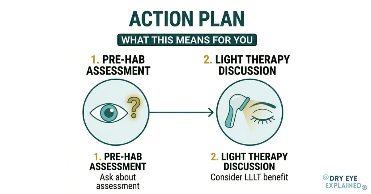 The integration of LLLT into the cataract surgery workflow is proving to be a highly effective, non-invasive approach to protect your eyes. If you already suffer from dry eye symptoms, relying solely on post-operative artificial tears may not be enough to ensure a comfortable recovery.